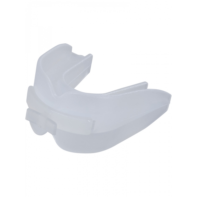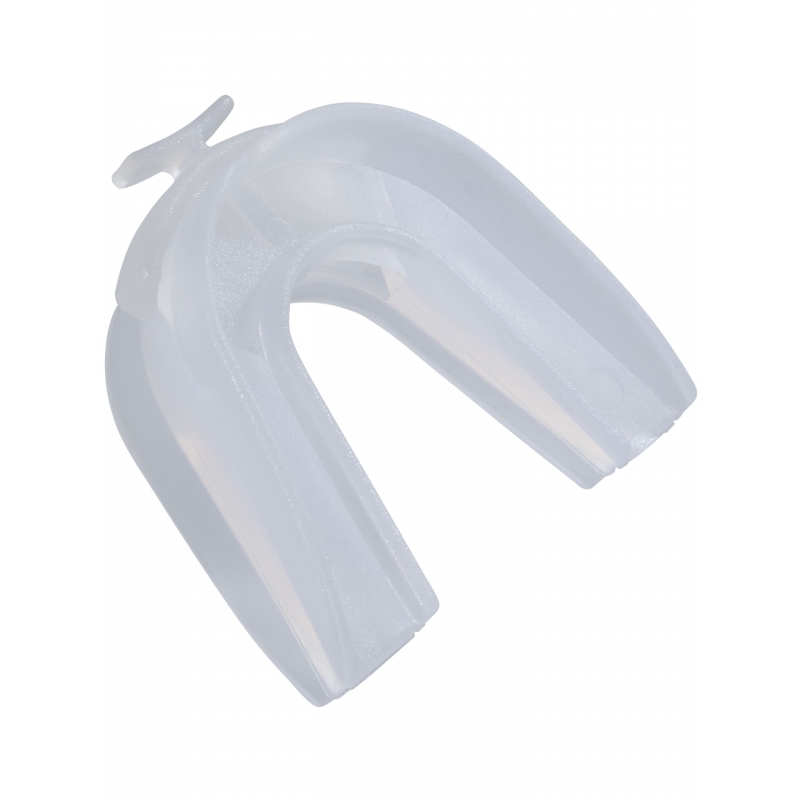 Průhledný chránič na zuby pro horní a dolní čelist. Chránič má integrovaný dýchací otvor.