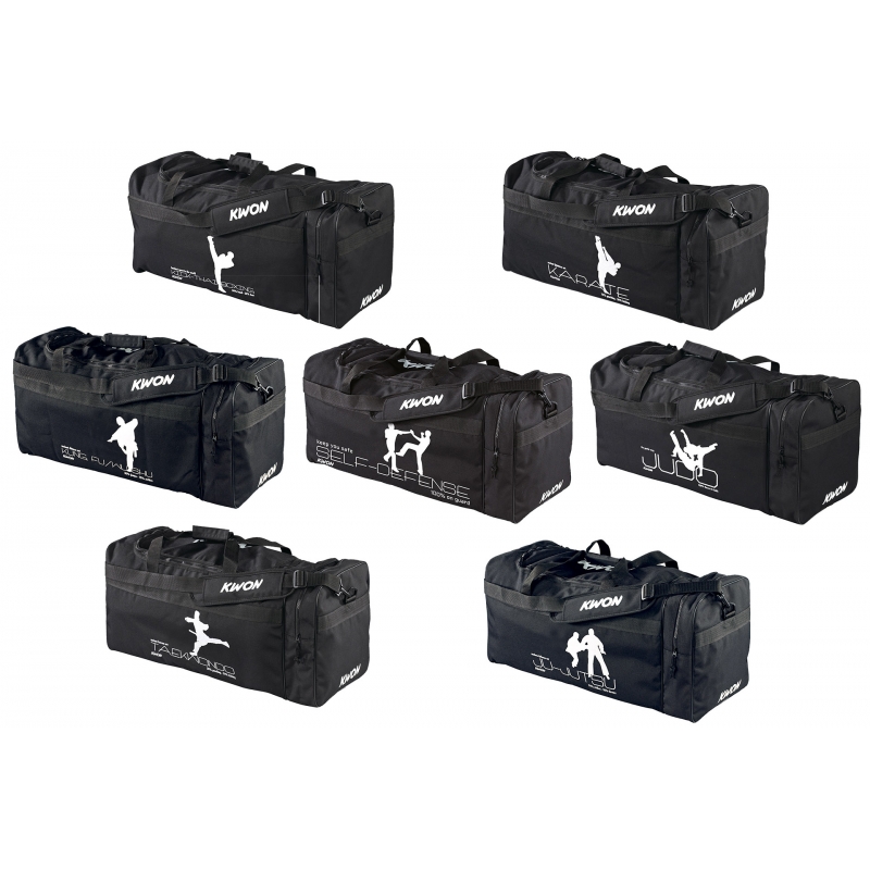 Velká taška KWON s motivem ju-jutsu v černé barvě má popruh přes rameno a dvě boční kapsy na zip. Tato taška je velmi prostorná - je ideální volbou na závody či soustředění.